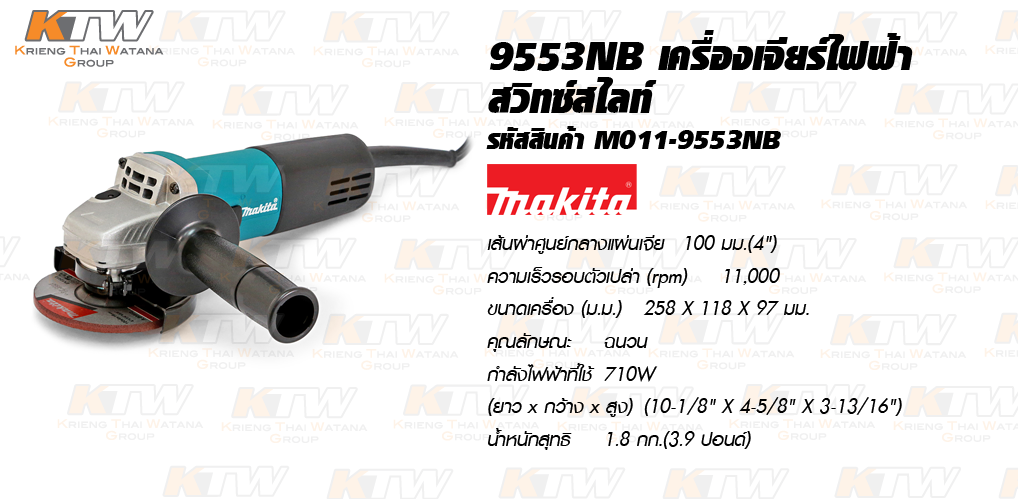 1. เครื่องเจียไฟฟ้า 4 นิ้ว MAKITA รุ่น 9553NB