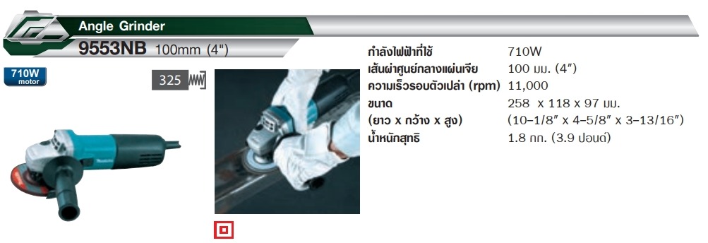 รุ่น 9553NB เครื่องเจียร์ไฟฟ้า 4" มือเดียว ขนาดกะทัดรัด ความสามารถสูง