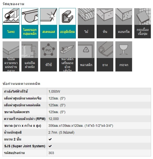 | ขนาดใบตัด (Dia of Blade) | 125 มม.(5") |