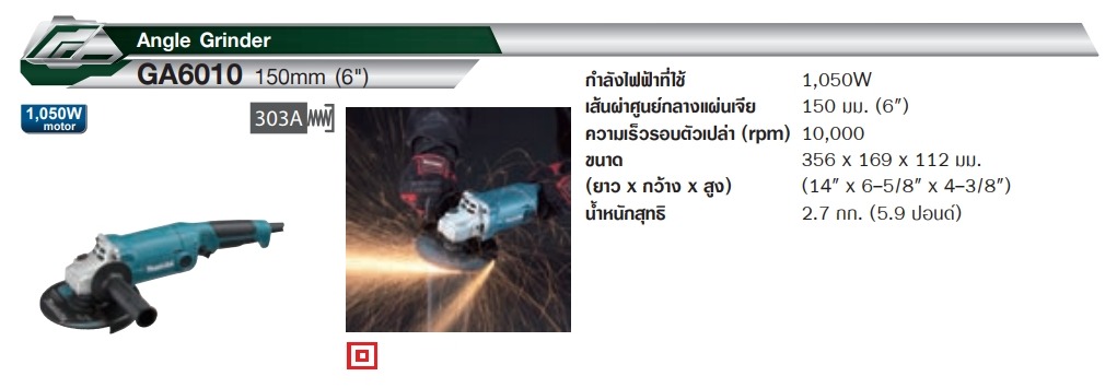 เครื่องเจียร์ไฟฟ้า 6" 150mm รุ่น GA6010 ยี่ห้อ Makita (JP) Angle Grinder เสื้อเครื่องจับถนัดมือ