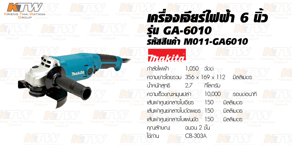 1. เครื่องเจีย 6 นิ้ว MAKITA รุ่น GA-6010