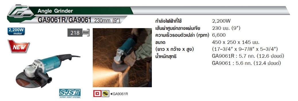 เครื่องเจียร์ไฟฟ้า 9" 230 MM รุ่น GA9061R ยี่ห้อ Makita (JP) Angle Grinder ทนทานสูง