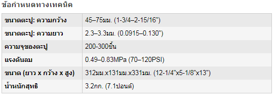 - ขนาดตะปูความกว้าง 45 - 75 mm (1-3/4 " - 2-15/16 ")