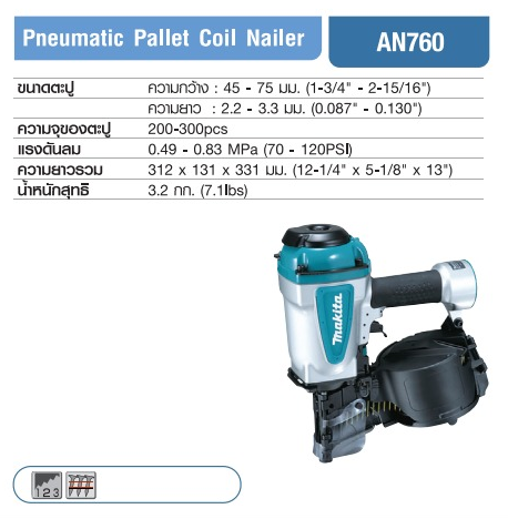 เครื่องยิงตะปูแบบม้วน 45-75 รุ่น AN760 ยี่ห้อ Makita (JP)
