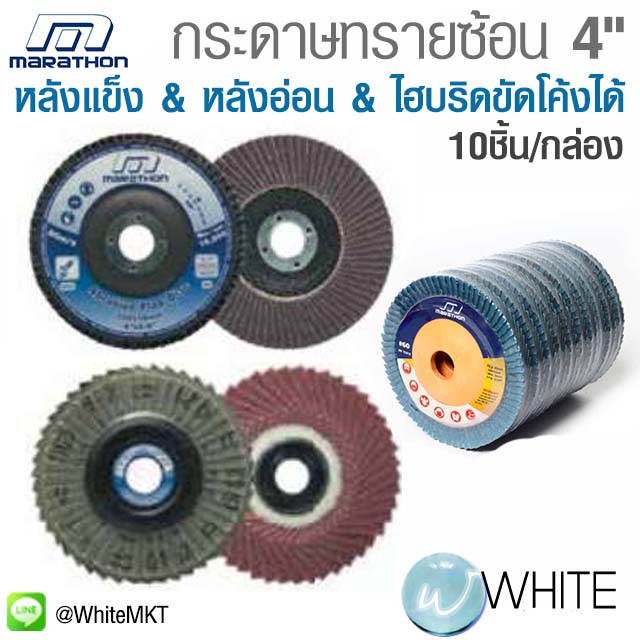 กระดาษทรายซ้อน หลังแข็ง & หลังอ่อน & ไฮบริดขัดโค้งได้ ขนาด 4 นิ้ว 10ชิ้น/กล่อง ยี่ห้อ MARATHON
