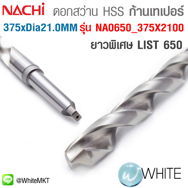 ดอกสว่าน HSS ก้านเทเปอร์ ยาวพิเศษ ขนาด ยาว 375 x Dia. 21.0 MM เจาะเหล็ก LIST 650 รุ่น NA0650_375X2100 ยี่ห้อ NACHI