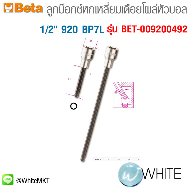 ลูกบ๊อกซ์หกเหลี่ยมเดือยโผล่หัวบอล 1/2" 920 BP7L รุ่น BET-009200492 ยี่ห้อ BETA