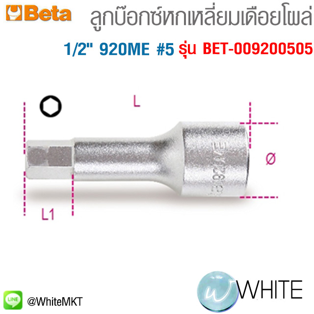 ลูกบ๊อกซ์หกเหลี่ยมเดือยโผล่ 1/2" 920ME #5 รุ่น BET-009200505 ยี่ห้อ BETA