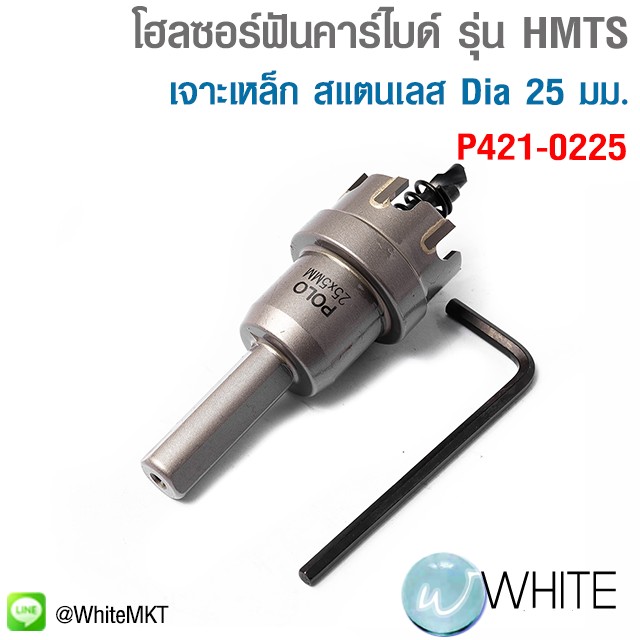 โฮลซอร์ฟันคาร์ไบด์ รุ่น HMTS สำหรับเจาะแผ่นเหล็กและสแตนเลส ความหนาไม่เกิน 5 มม. ขนาดเส้นผ่าศูนย์กลาง 25 มม. รุุ่น P421-0225 ยี่ห้อ POLO