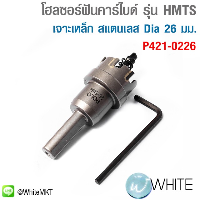 โฮลซอร์ฟันคาร์ไบด์ รุ่น HMTS สำหรับเจาะแผ่นเหล็กและสแตนเลส ความหนาไม่เกิน 5 มม. ขนาดเส้นผ่าศูนย์กลาง 26 มม. รุุ่น P421-0226 ยี่ห้อ POLO