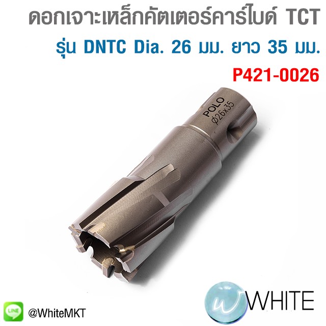 ดอกเจาะเหล็กคัตเตอร์คาร์ไบด์ TCT รุ่น DNTC ขนาดเส้นผ่าศูนย์กลาง 26 มม. ความยาว 35 มม. เจาะได้ลึกสูงสุด 35 มม. สามารถเจาะเหล็กได้แม่นยำ ใช้ได้กับสว่านแท่นแม่เหล็กทุกยี่ห้อ รุุ่น P421-0026 ยี่ห้อ POLO