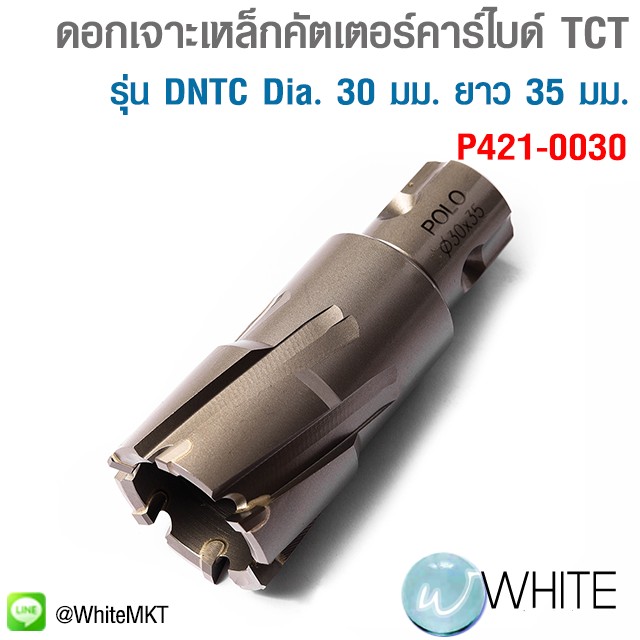 ดอกเจาะเหล็กคัตเตอร์คาร์ไบด์ TCT รุ่น DNTC ขนาดเส้นผ่าศูนย์กลาง 30 มม. ความยาว 35 มม. เจาะได้ลึกสูงสุด 35 มม. สามารถเจาะเหล็กได้แม่นยำ ใช้ได้กับสว่านแท่นแม่เหล็กทุกยี่ห้อ รุุ่น P421-0030 ยี่ห้อ POLO
