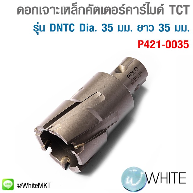 ดอกเจาะเหล็กคัตเตอร์คาร์ไบด์ TCT รุ่น DNTC ขนาดเส้นผ่าศูนย์กลาง 35 มม. ความยาว 35 มม. เจาะได้ลึกสูงสุด 35 มม. สามารถเจาะเหล็กได้แม่นยำ ใช้ได้กับสว่านแท่นแม่เหล็กทุกยี่ห้อ รุุ่น P421-0035 ยี่ห้อ POLO