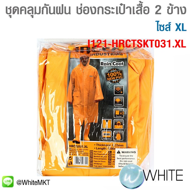ชุดคลุมกันฝน ไซส์ XL รุ่น HRCTSKT031 ใส่สบาย มีช่องกระเป๋าเสื้อ 2 ข้าง ผลิตจาก PVC+Polyester 100% รุ่น I121-HRCTSKT031.XL ยี่ห้อ INGCO