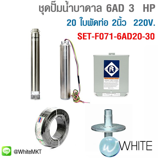 ชุดปั๊มน้ำบาดาล 6AD 3 HP 20 ใบพัดท่อ 2นิ้ว 220V. รุุ่น SET-F071-6AD20-30 ยี่ห้อ FRANKLIN