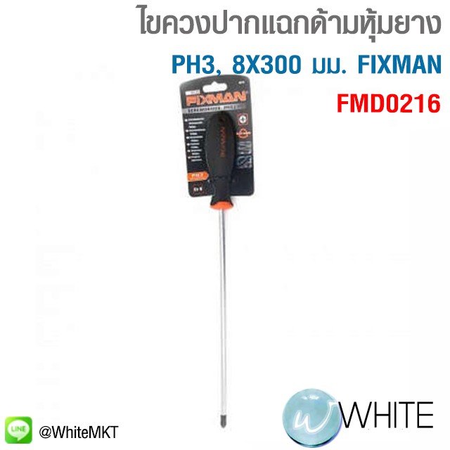 ไขควงปากแฉกด้ามหุ้มยาง PH3, 8x300 มม. FIXMAN