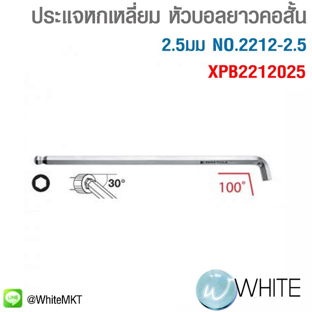 ประแจหกเหลี่ยม หัวบอลยาวคอสั้น 2.5มม NO.2212-2.5 PB