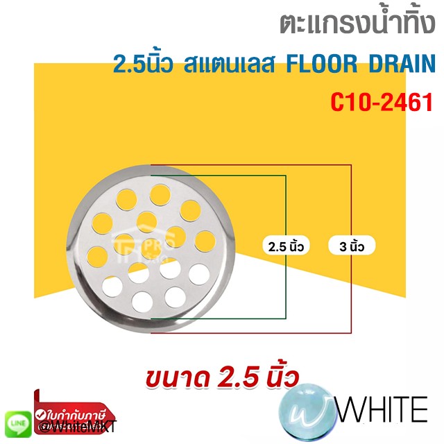 2.5นิ้ว แถม2.5นิ้ว ตะแกรงน้ำทิ้ง รังผึ้ง สแตนเลส 1.5นิ้ว - 4นิ้ว FLOOR DRAIN รุุ่น C10-2461 C10