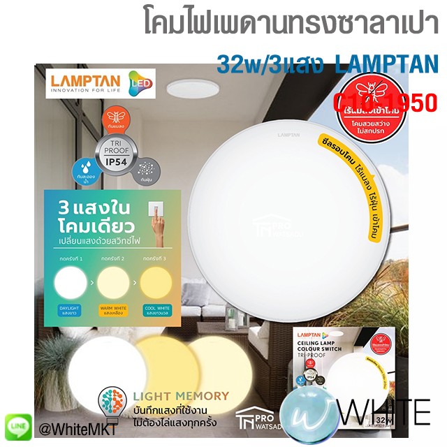 #LAMPTAN #โคมไฟ #โคมไฟซาลาเปา #LED #ทรงซาลาเปา #18 วัตต์ #18w #โคมเพดาน #เพดาน #star #24w #32w