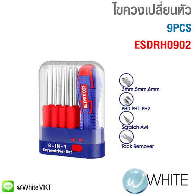 ไขควงเปลี่ยนหัว 9PCS ESDRH0902 ยี่ห้อ EMTOP C20