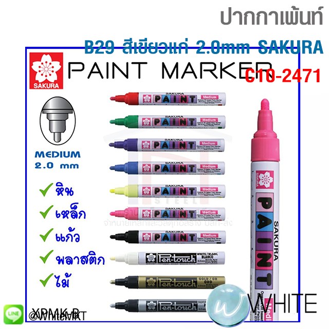 ปากกาเพ้นท์ หัวใหญ่ SAKURA ที่สามารถเขียนได้ดีลงบนวัสดุต่างๆ เช่น หิน เหล็ก แก้ว พลาสติก ไม้ และ กระดาษ ปลอดภัยจากสารพิษด้วยมาตรฐาน AP ที่ได้รับการรับรองจากประเทศสหรัฐอเมริกา เหมาะสำหรับงานศิลปะต่างๆ เช่น เพนท์แก้ว หรือ เซรามิค และ งานอุตสาหกรรมต่างๆ