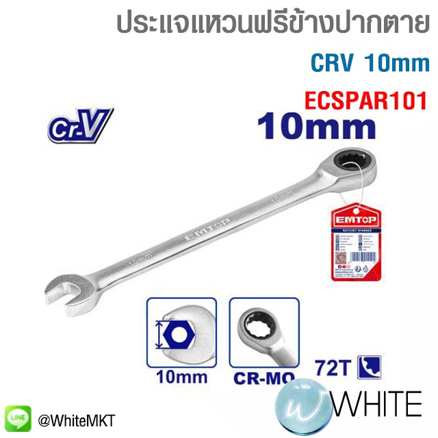 ประแจแหวนฟรีข้างปากตาย CRV 10mmECSPAR101 ยี่ห้อ EMTOP C20