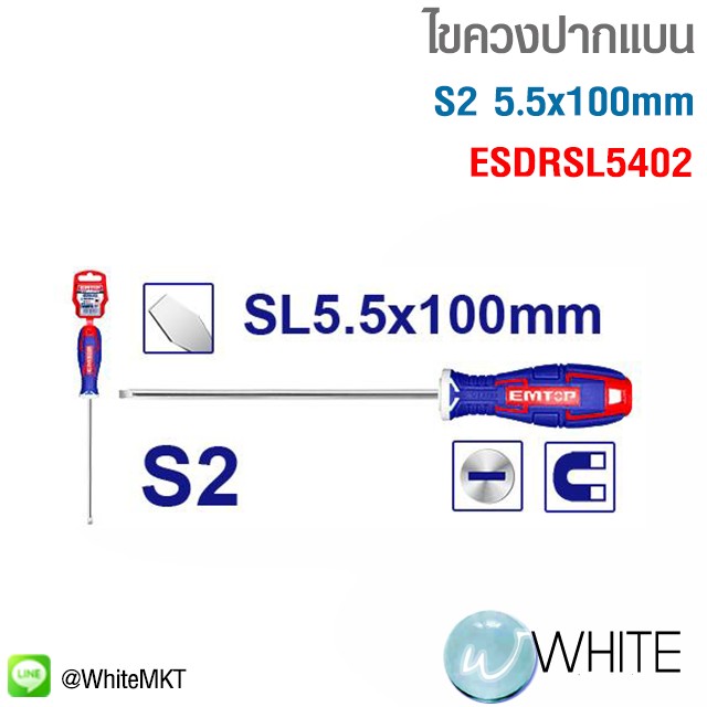 ไขควงปากแบน S2 5.5x100mmESDRSL5402 ยี่ห้อ EMTOP C20