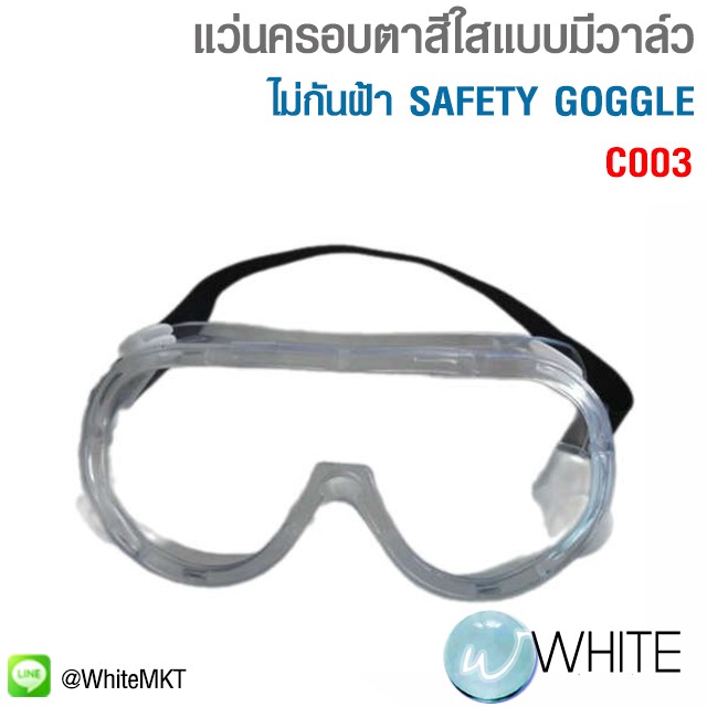 แว่นครอบตาสีใสแบบมีวาล์ว ไม่กันฝ้า SAFETY GOGGLE รุุ่น C003 C11