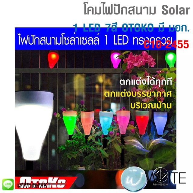 โคมไฟปักสนาม หลอดไฟ Solar light 1 LED แสง7สี แผงโซล่าเซลล์ พลังงานแสงอาทิตย์ OTOKO มี มอก. รุุ่น C10-2455 C10