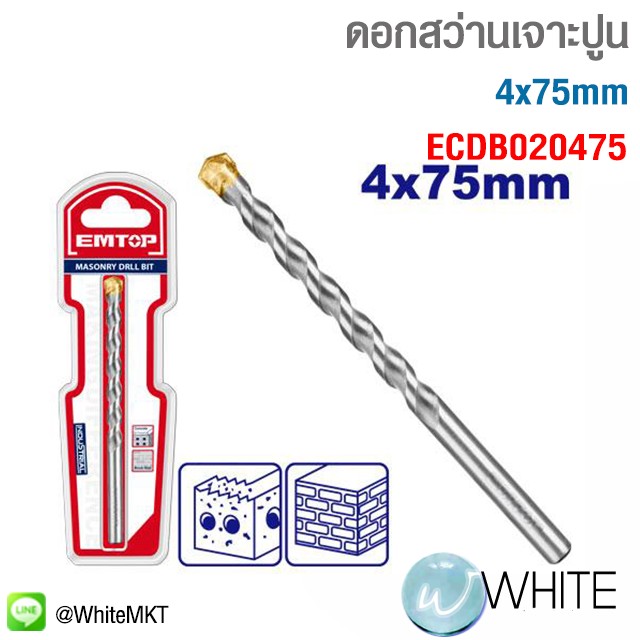 ดอกสว่านเจาะปูน 4x75mmECDB020475 ยี่ห้อ EMTOP C20