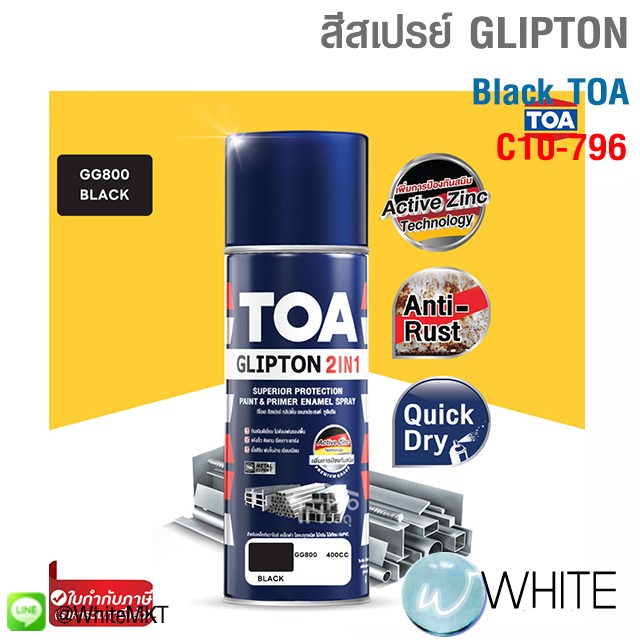 Black (GG800) SPRAY GLIPTON 2IN1 สีสเปรย์พ่นงานเหล็ก รองพื้นผสมทับหน้าในกระป๋องเดียว สูตรทนทาน (400cc) TOA รุุ่น C10-796 C10