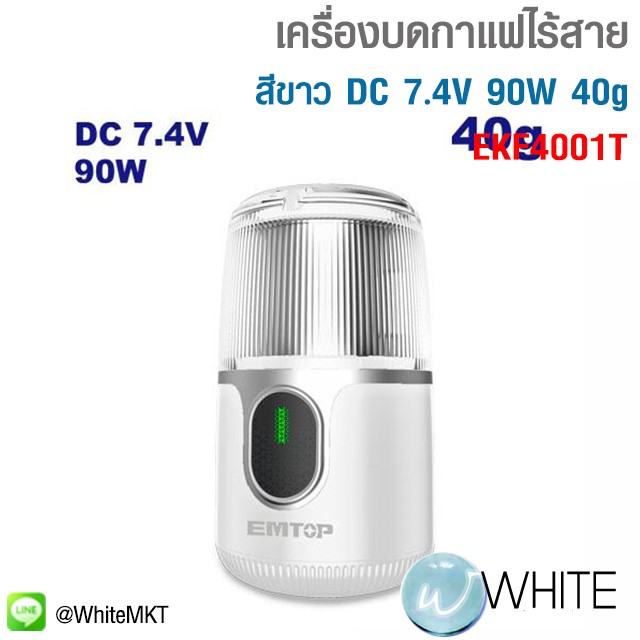เครื่องบดกาแฟไร้สาย สีขาว DC 7.4V 90W 40gEKF4001T ยี่ห้อ EMTOP C20