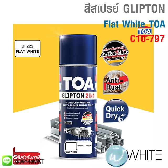 Flat White (GF222) SPRAY GLIPTON 2IN1 สีสเปรย์พ่นงานเหล็ก รองพื้นผสมทับหน้าในกระป๋องเดียว สูตรทนทาน (400cc) TOA รุุ่น C10-797 C10