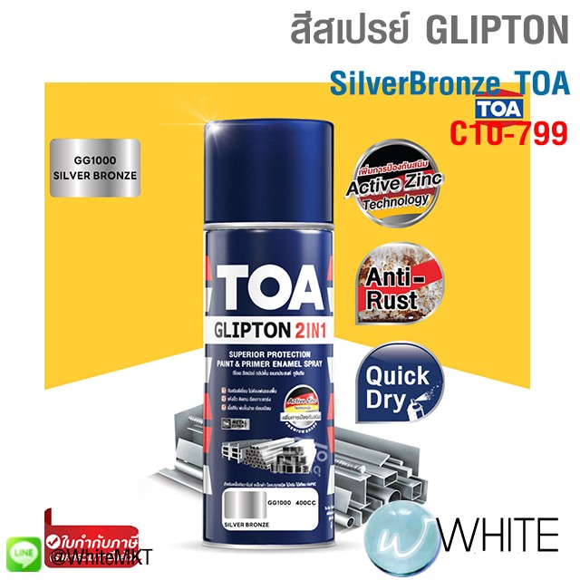 SilverBronze(GG1000) SPRAY GLIPTON 2IN1 สีสเปรย์พ่นงานเหล็ก รองพื้นผสมทับหน้าในกระป๋องเดียว สูตรทนทาน (400cc) TOA รุุ่น C10-799 C10