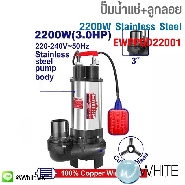 ปั๊มน้ำแช่+ลูกลอย ดูดโคลน Stainless Steel 2200W(3.0HP)EWPPQD22001 ยี่ห้อ EMTOP C20