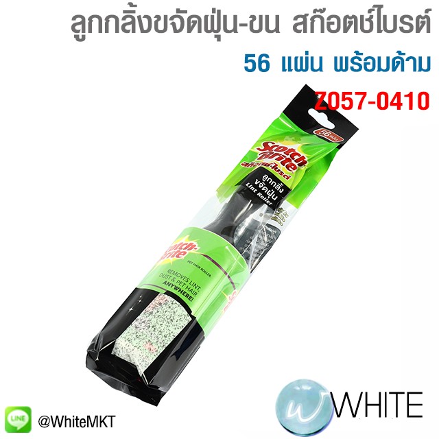 ลูกกลิ้งขจัดฝุ่น-ขน สก๊อตช์ไบรต์ 56 แผ่น พร้อมด้าม ใช้กลิ้งบนเสื้อผ้า หรือพื้นผิวที่มีเศษผง หรือฝุ่นละอองที่ต้องการขจัดออก เปลี่ยนรีฟิลได้ ขนาด 6x4 นิ้ว รุุ่น Z057-0410 ยี่ห้อ 3M