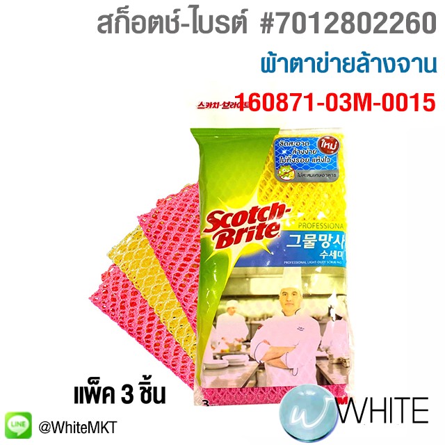 สก็อตช์-ไบรต์ #7012802260 ผ้าตาข่ายล้างจาน ตาข่ายล้างภาชนะอเนกประสงค์ ไม่สะสมแบคทีเรีย,ไม่สะสมเศษอาหาร,แห้งเร็ว,เส้นใยไม่หลุด ราคาต่อแพ็ค (3ชิ้น/แพ็ค) , (30แพ็ค/ลัง) 3M 3M WX400054770160871-03M-0015 C23