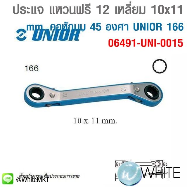 ประแจ แหวนฟรี 12 เหลี่ยม 10x11 mm. คอหักมุม 45 องศา UNIOR 166 06491-UNI-0015 C23