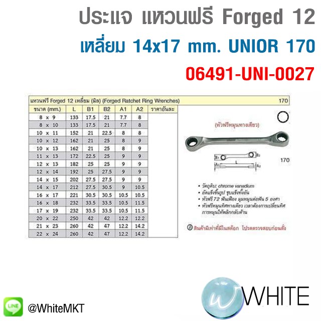 ประแจ แหวนฟรี Forged 12 เหลี่ยม 14x17 mm. UNIOR 170 06491-UNI-0027 C23