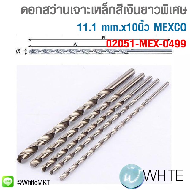 ดอกสว่านเจาะเหล็กสีเงินยาวพิเศษ 11.1 mm.x10นิ้ว MEXCO 02051-MEX-0499 C23