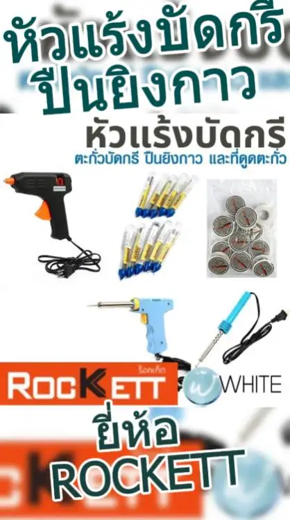 ข้อมูลเพิ่มเติม https://www.whitemktstore.com/product/tag/rockett-soldering-tools-glue-guns