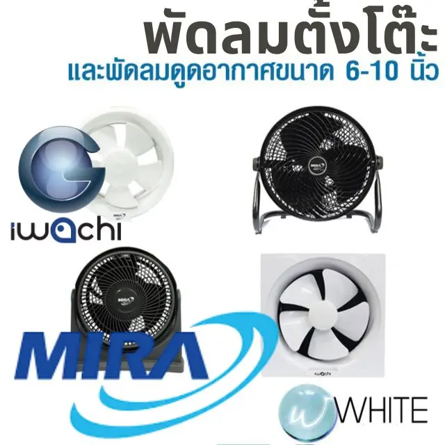 พัดลมตั้งโต๊ะ 8-14" พัดลมดูดอากาศขนาด 6-10 นิ้ว ยี่ห้อ MIRA IWACHI
