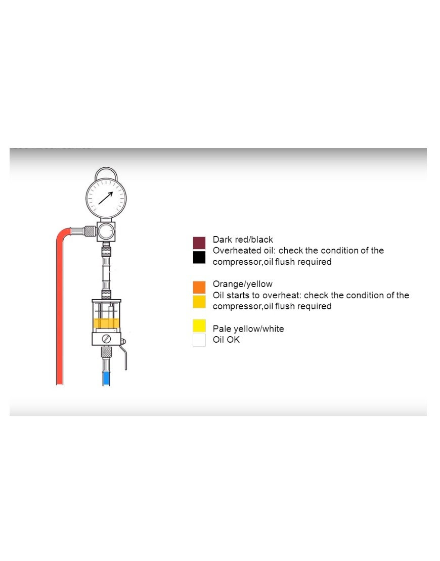 • Dark red/black - Overheated oil: check the condition of the compressor, oil flush required