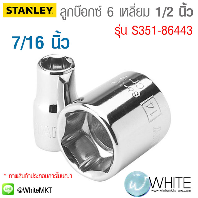 ลูกบ๊อกซ์สั้น 6 เหลี่ยม แกน 1/2 นิ้ว ขนาด 7/16 นิ้ว รุ่น S351-86443 ยี่ห้อ STANLEY