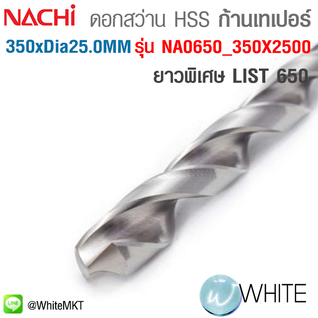 ดอกสว่าน HSS ก้านเทเปอร์ ยาวพิเศษ ขนาด ยาว 350 x Dia. 25.0 MM เจาะเหล็ก LIST 650 รุ่น NA0650_350X2500 ยี่ห้อ NACHI