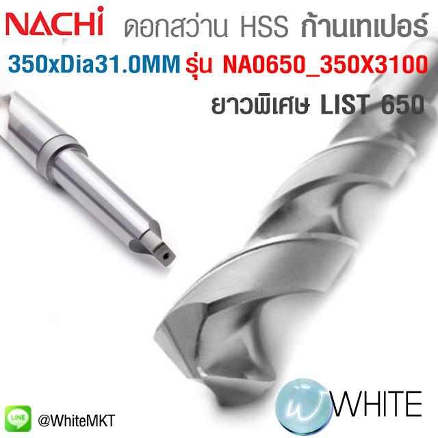 ดอกสว่าน HSS ก้านเทเปอร์ ยาวพิเศษ ขนาด ยาว 350 x Dia. 31.0 MM เจาะเหล็ก LIST 650 รุ่น NA0650_350X3100 ยี่ห้อ NACHI