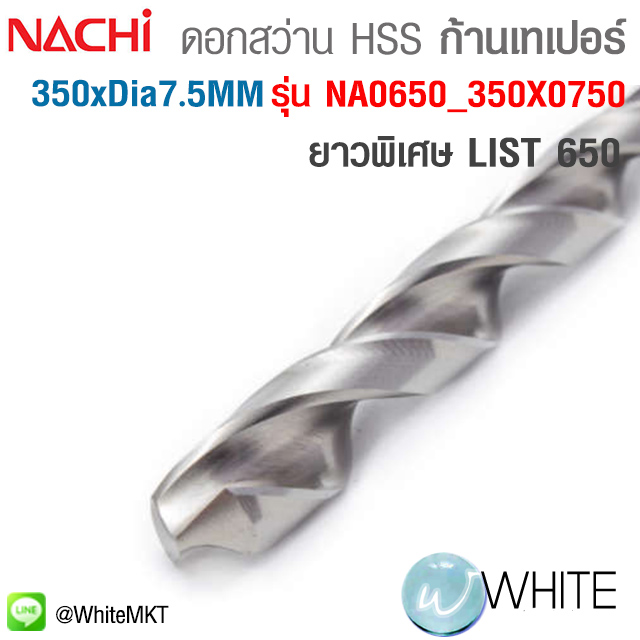 ดอกสว่าน HSS ก้านเทเปอร์ ยาวพิเศษ ขนาด ยาว 350 x Dia. 7.5 MM เจาะเหล็ก LIST 650 รุ่น NA0650_350X0750 ยี่ห้อ NACHI