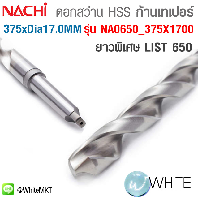 ดอกสว่าน HSS ก้านเทเปอร์ ยาวพิเศษ ขนาด ยาว 375 x Dia. 17.0 MM เจาะเหล็ก LIST 650 รุ่น NA0650_375X1700 ยี่ห้อ NACHI