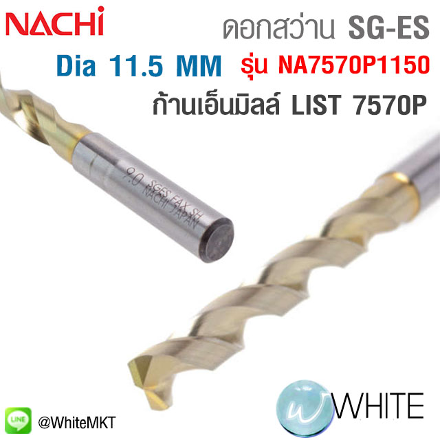 ดอกสว่านพิเศษ SG-ES ขนาด Dia. 11.5 MM ผลิตจาก Powder Metal HSS (FAX) เคลือบผิว SG-ก้านเอ็นมิลล์ LIST 7570P รุ่น NA7570P1150 ยี่ห้อ NACHI
