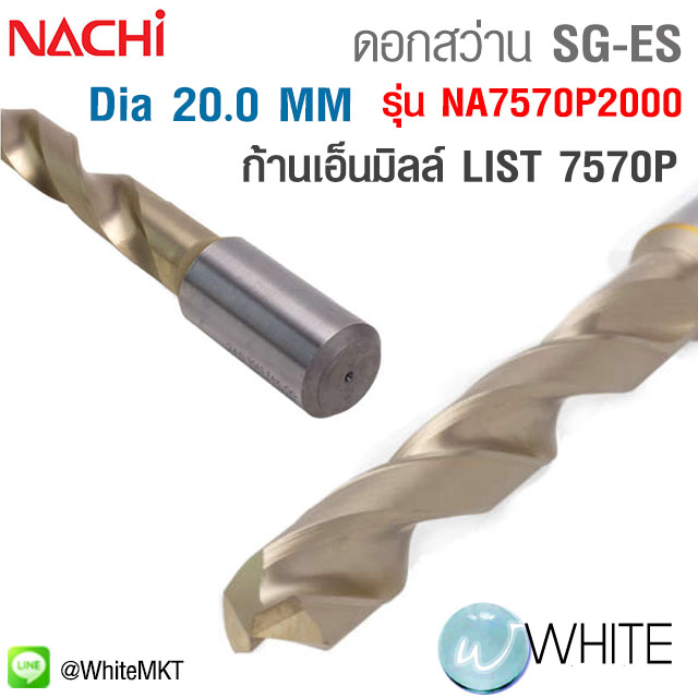 ดอกสว่านพิเศษ SG-ES ขนาด Dia. 20.0 MM ผลิตจาก Powder Metal HSS (FAX) เคลือบผิว SG-ก้านเอ็นมิลล์ LIST 7570P รุ่น NA7570P2000 ยี่ห้อ NACHI